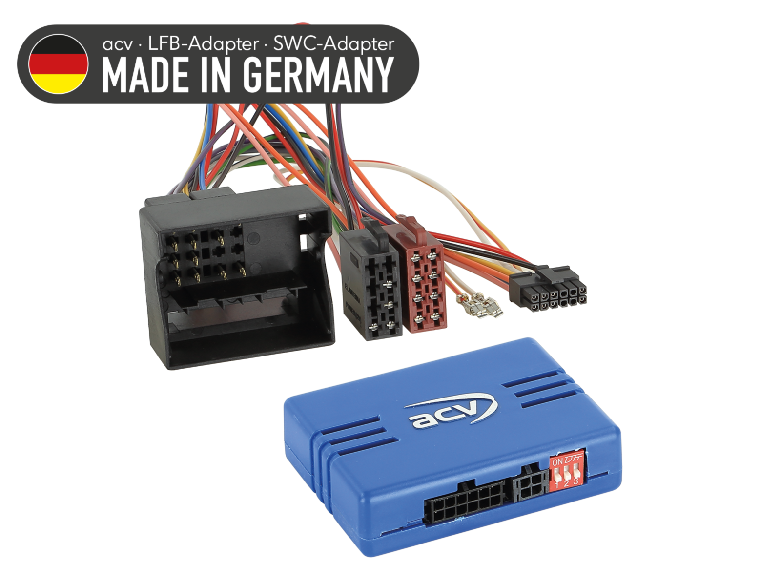 Vergleichen Sie die abgebildeten Stecker des Adapters mit denen in Ihrem Fahrzeug und vergewissern Sie sich, dass diese optisch und technisch passen. Prüfen Sie bitte auch, ob eines der angegebenen originalen Werksradios in Ihrem Fahrzeug verbaut war. Vor der Endmontage Fahrzeugfunktionen, Fahrzeugeinstellungen und Lenkradfernbedienung auf Funktion prüfen.